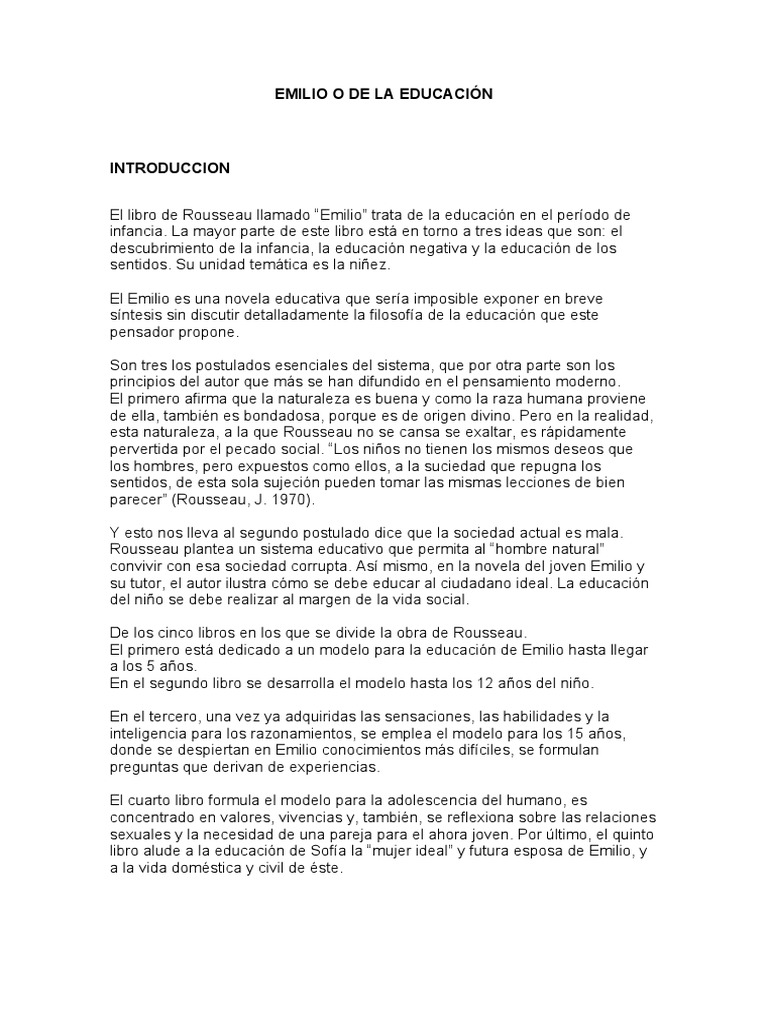 Emilio de rousseau resumen. Resumen del emilio de rousseau. Se proporcionan algunos datos sobre el contexto histrico y la estructura de la obra se ofrece un resumen de cada uno de los cinco. RESUMEN DEL LIBRO PRIMERO DE EMILIO O LA EDUCACION Aquel de nosotros que mejor sabe sobrellevar los bienes y los males de esta vida es a mi parecer el ms educado Rousseau JJ.
