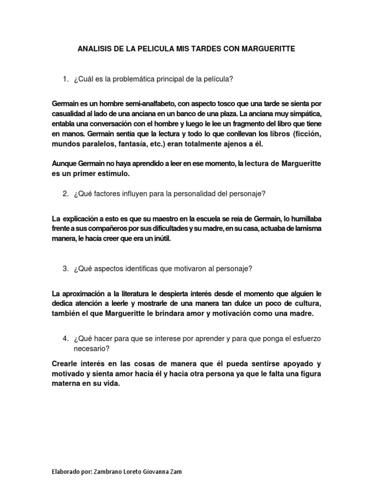 Analisis De La Pelicula Mis Tardes Con Margueritte Pdf
